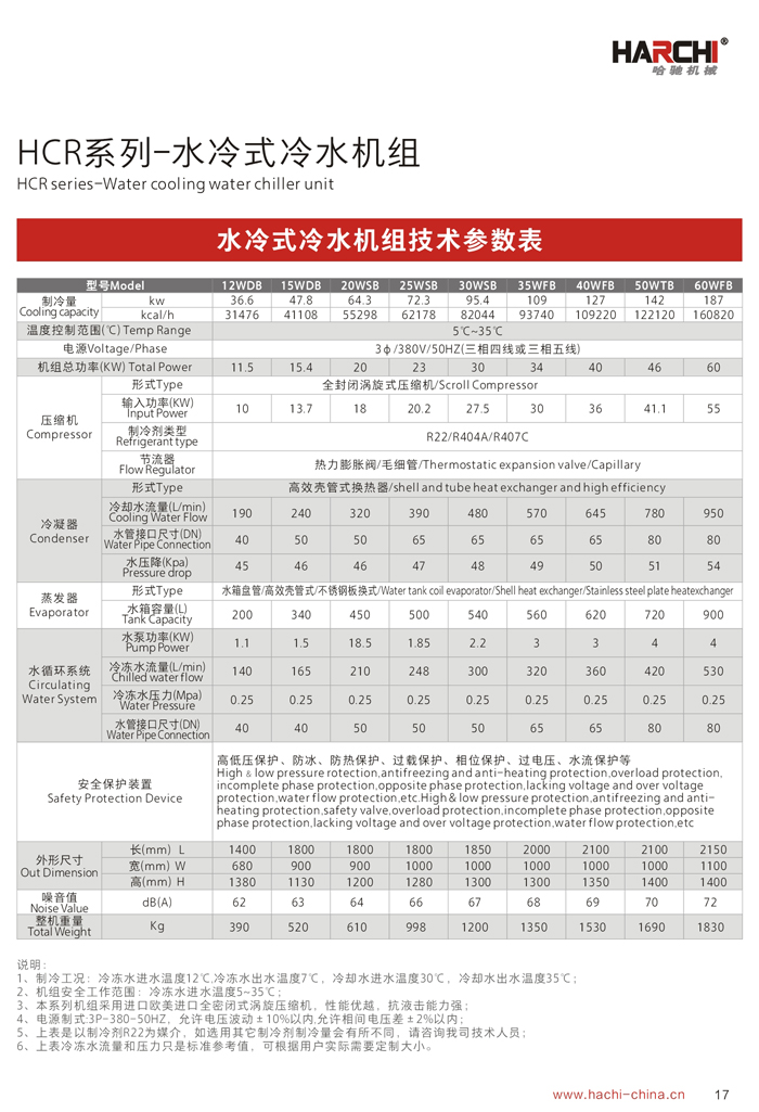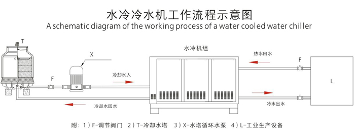 3、水冷系列需要配置冷卻水塔及冷卻水泵,冷水機放置在室內(nèi),噪音比較低,制冷效果更